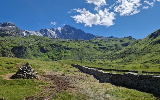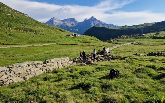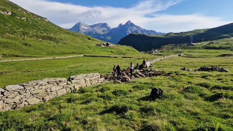 Die Tamboalp, gelegen auf über 2'000 m.ü.M. nahe dem Splügenpass, ist ein wertvolles Natur- und Kulturerbe, das sowohl im Winter als auch im Sommer zahlreiche Besucher anzieht. Die markanten Trockenmauern, insbesondere der rund ein Hektar grosse Pferch, sind prägende Elemente der alpinen Landschaft und zeugen von der traditionellen Nutzung der Alpweiden.
