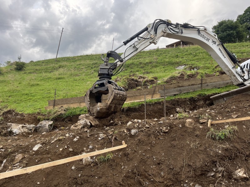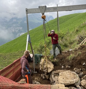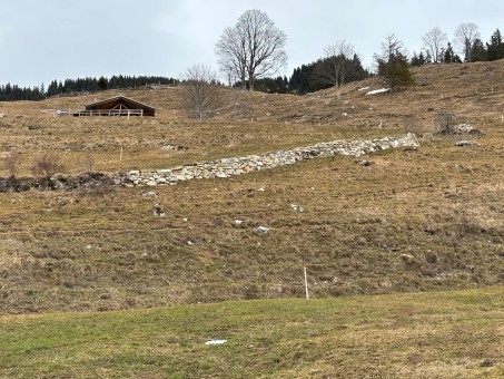 Im Jahr 2025 stand die Sanierung einer besonders alten Trockenmauer im Spisboden im Fokus. Diese Mauer, ursprünglich zum Stützen eines Gemüsegartens errichtet, befindet sich heute in einem stark beschädigten Zustand und gefährdet die Stabilität des Geländes, das mittlerweile als Weidefläche genutzt wird.