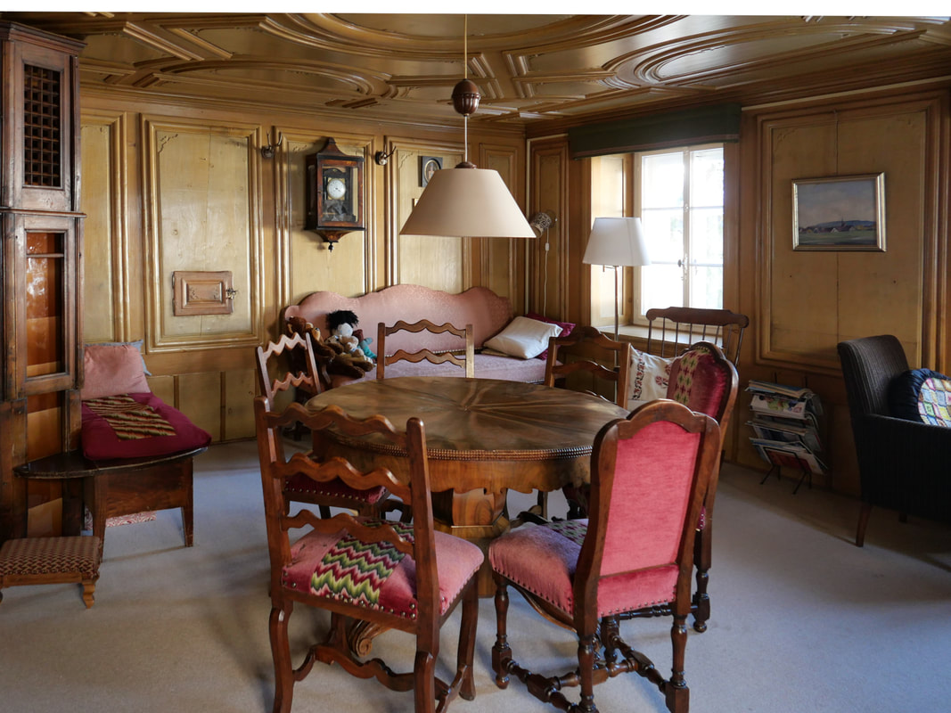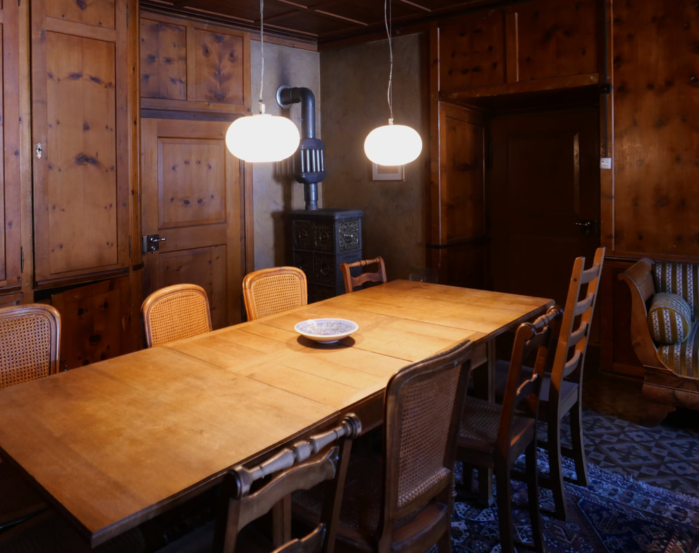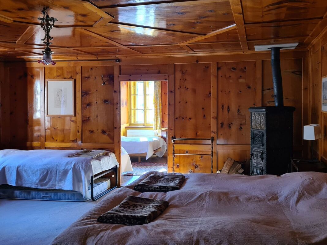Charmantes Gruppenhaus Chesa Orta im Ortskern von Bergün: mehrere kleine Schlafzimmer mit 2 bis 3 Betten, Küche, Stube, Esszimmer, Duschen, Toiletten, usw.