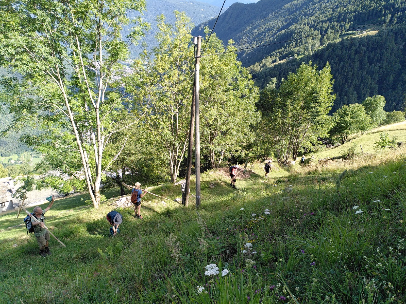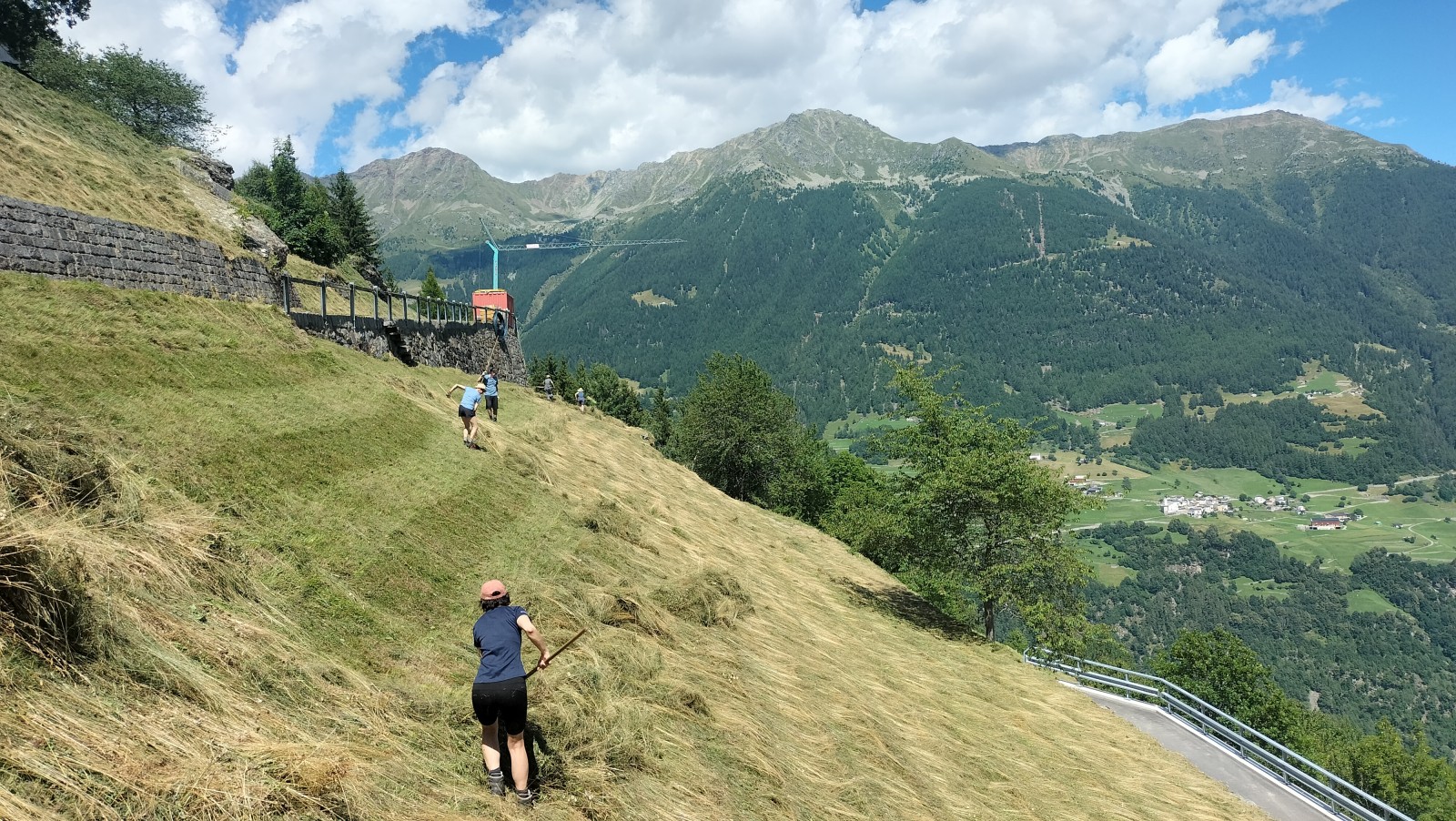 Je nach Bedarf Heuen, Aufwertungsarbeiten von Trockenwiesen und Weiden (z.B. Entbuschen, Asthaufen anlegen), Schlagräumungen. Arbeiten in steilem Gelände.