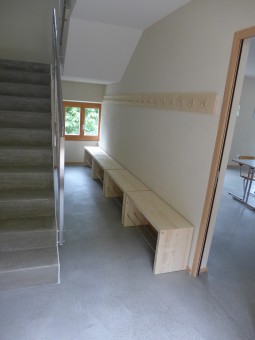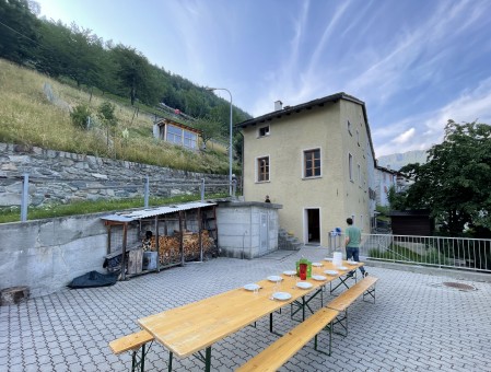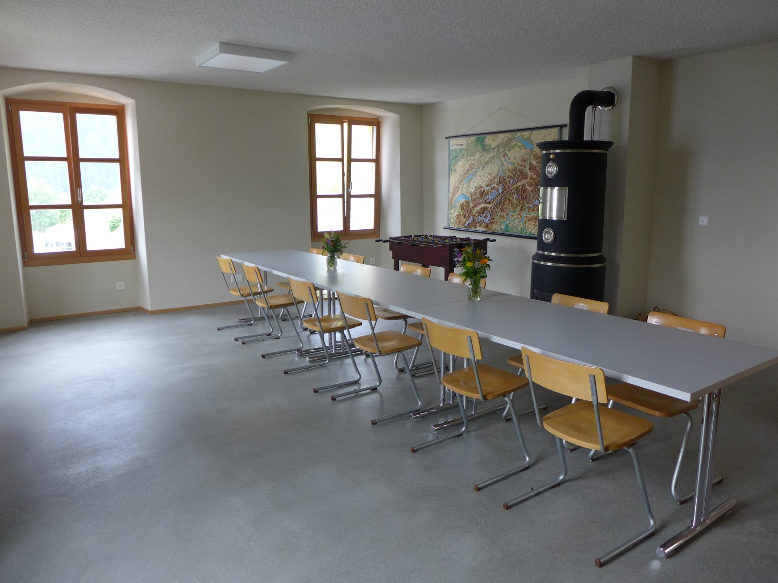 Renoviertes ehemaliges Schulhaus mit Massenlager im Zentrum des Dorfes auf 1110 m ü. M. Aufenthaltsraum, Terrasse.