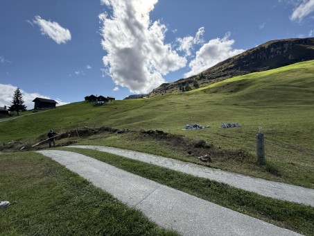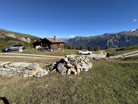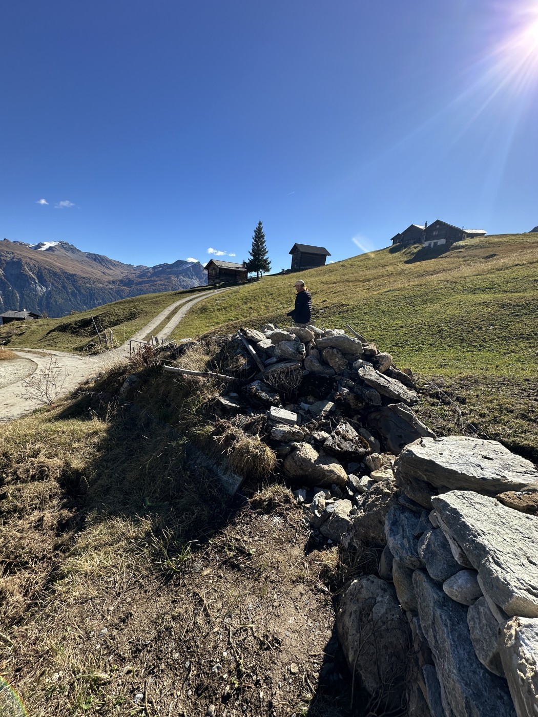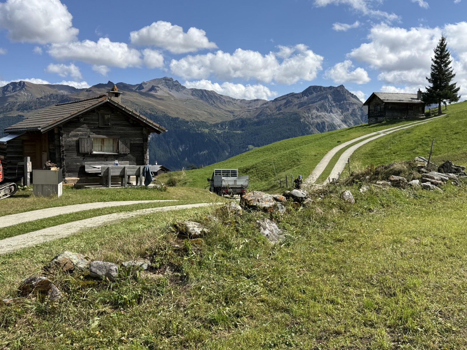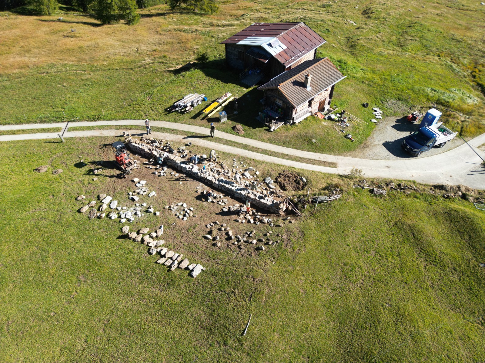 In dieser Postkartenkulisse soll diese Ferienarbeitswoche die 2025 begonnene Sanierung einer Trockenmauer abgeschlossen werden. Es handelt sich um ein „gemischtes” Bauwerk, teils steht sie frei, teils dient sie als Stützmauer. Sie verläuft entlang eines historischen Verkehrsweges von regionaler Bedeutung. Diese gut sichtbare und für die Landschaft prägende Trockenmauer ist auch wichtig für das örtliche ökologische Netzwerk. Diese Woche, die in Zusammenarbeit mit dem Naturpark Beverin durchgeführt wird, leistet einen wichtigen Beitrag zur Erhaltung einer typischen Kulturlandschaft.
