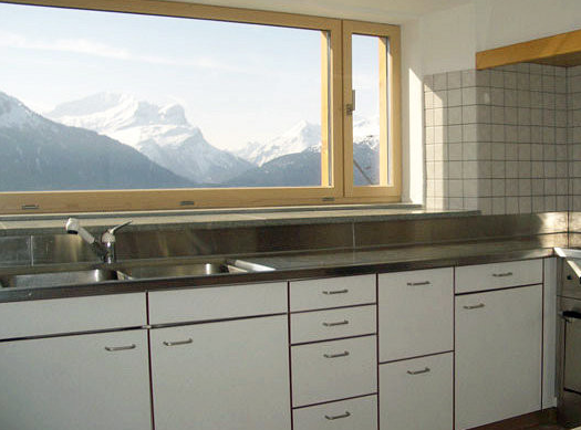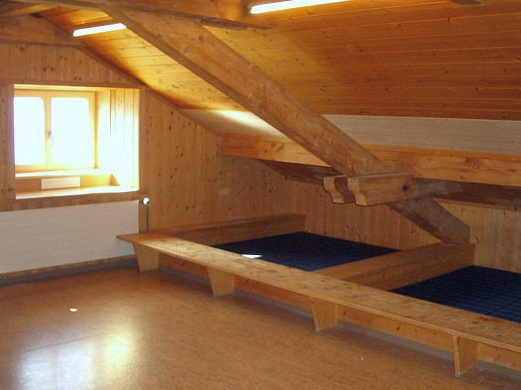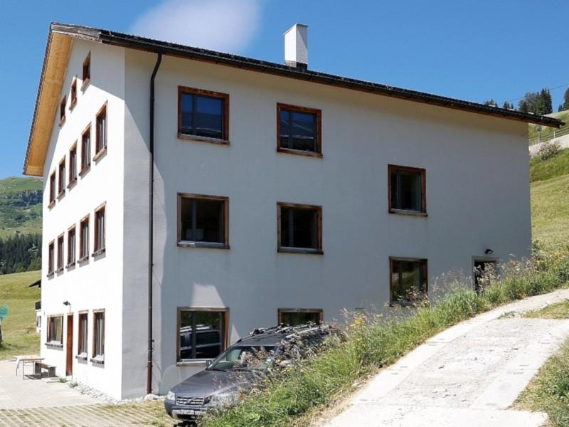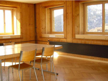 Altes Schulhaus in Mathon auf 1’520 m ü. M. mit Weitsicht. Massenlager, Aufenthaltsraum, Terrasse.