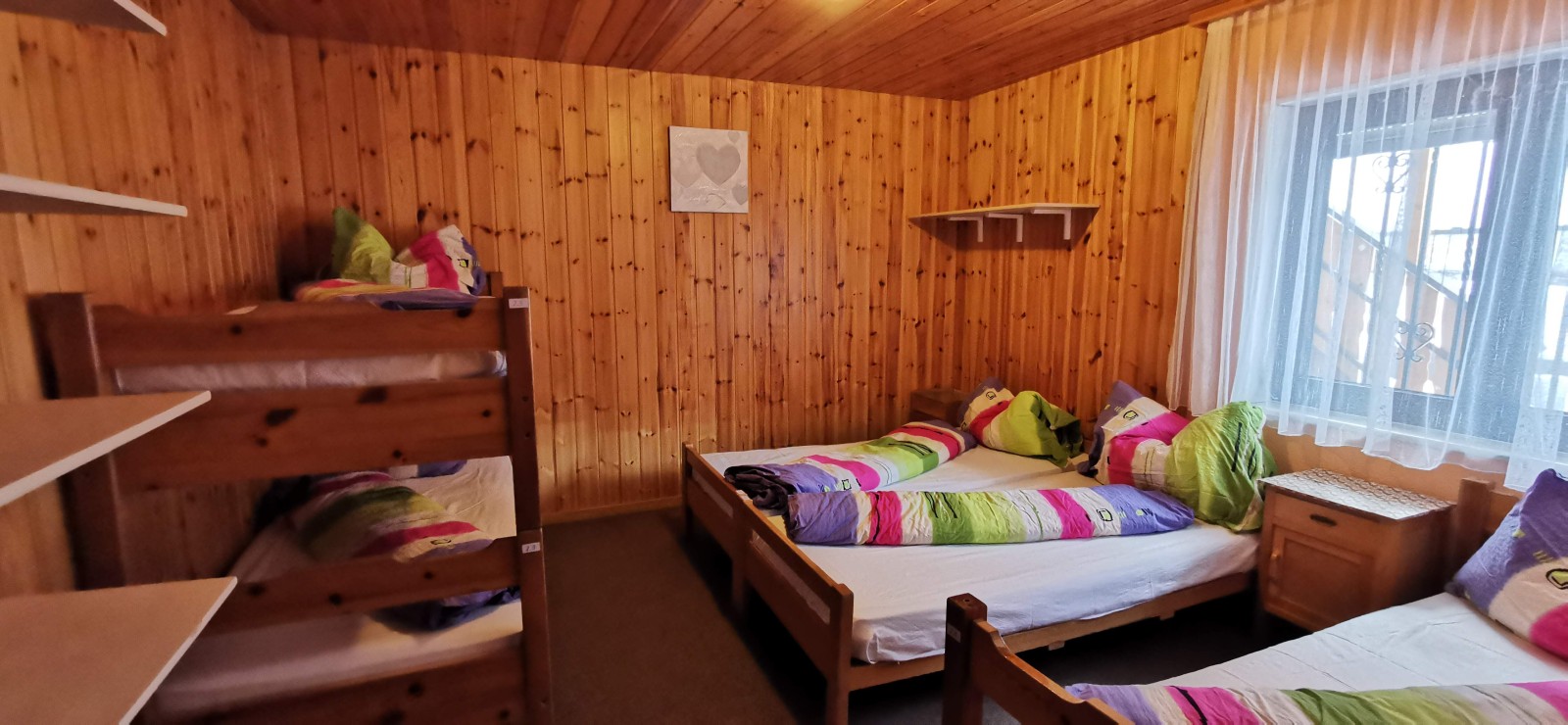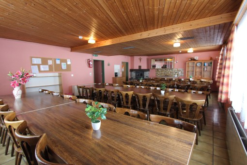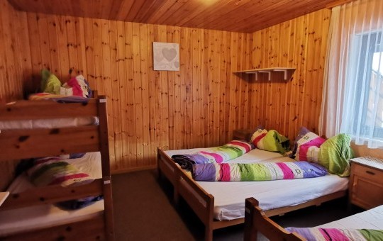 Gruppenunterkunft «Zur Vispu» in Saas-Balen auf 1483 m ü. M.: Massenlager, Ess- und Aufenthaltsraum.